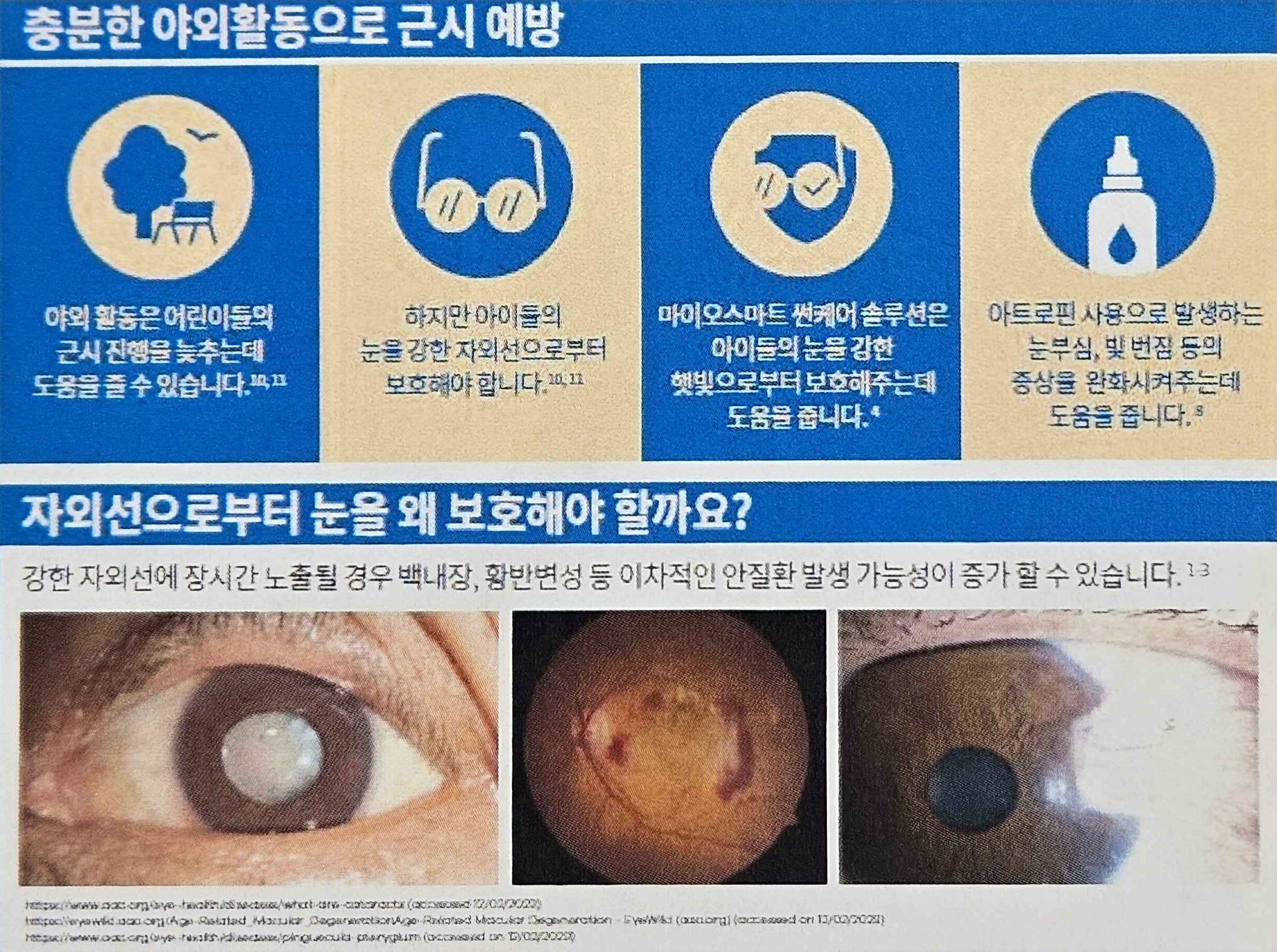 피부를 보호하는 선크림처럼 자외선으로부터 눈을 보호할 필요가 있습니다.