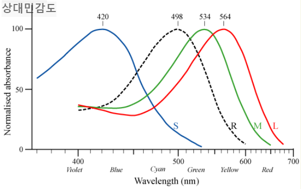 녹색원뿔세포 - Middle wavelength sensitive 510~540nm