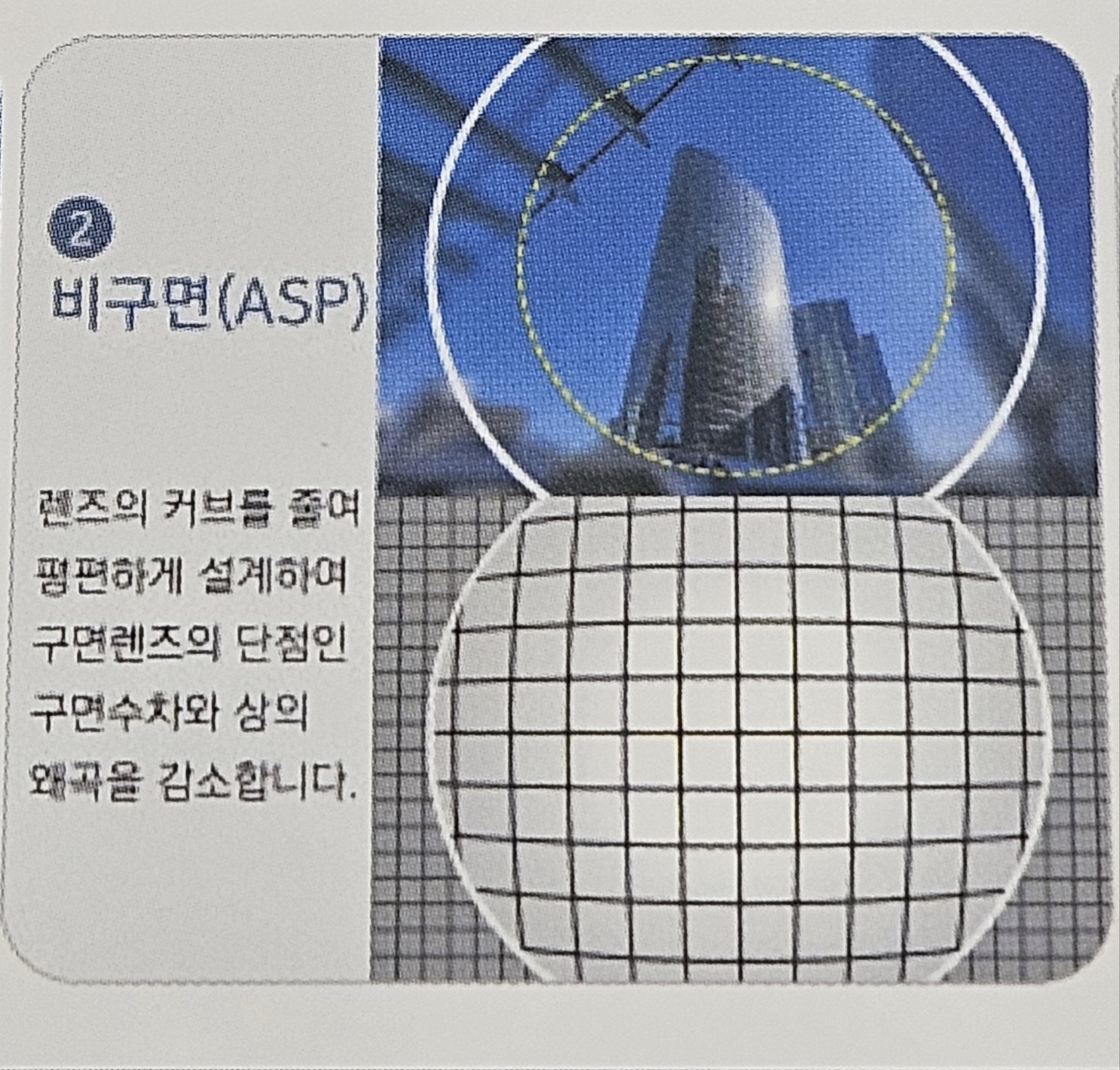 - 구면렌즈 보다 얇고 비점수차를 줄여줍니다.