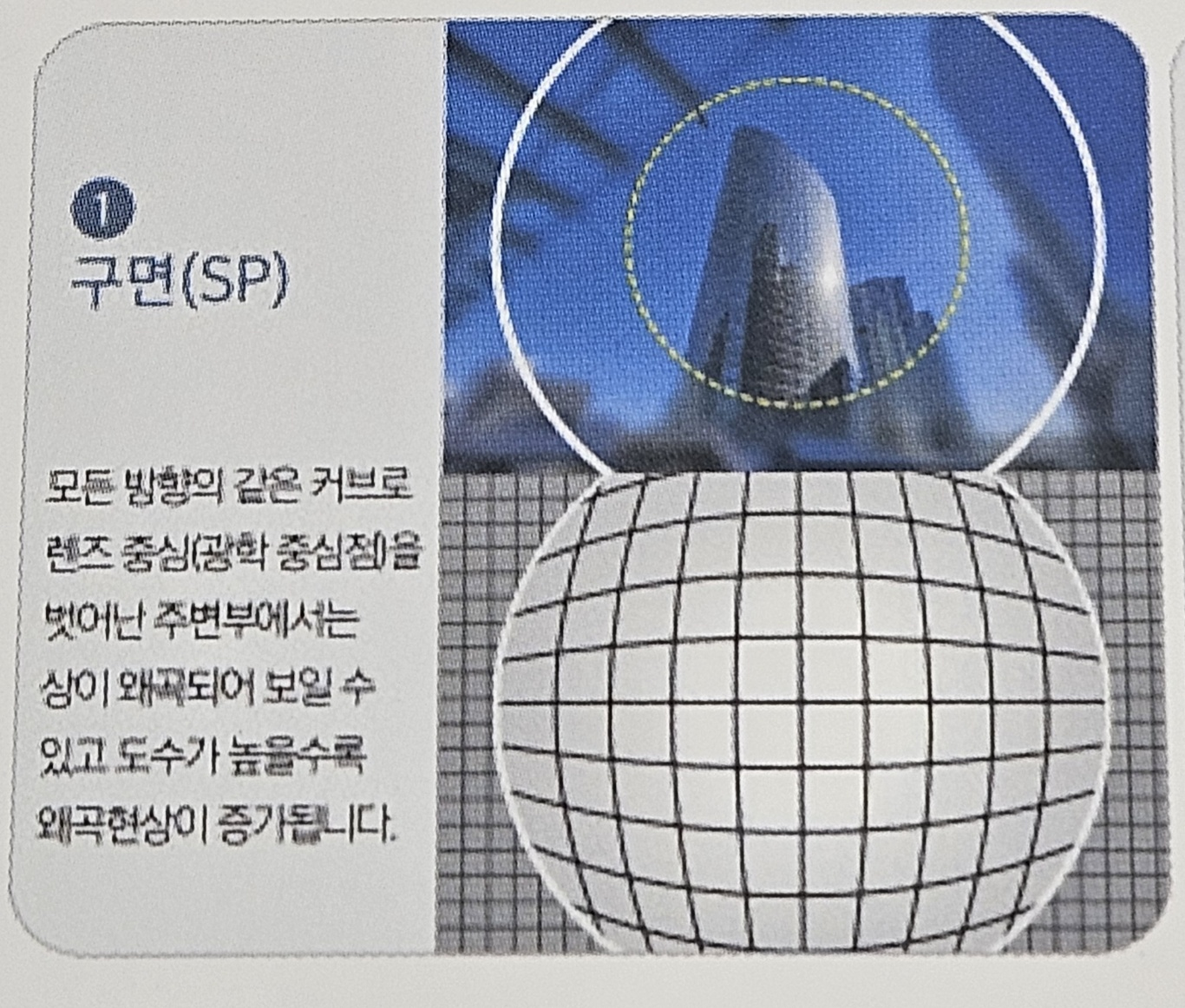 구면수차는 구면인 렌즈를 통과한 빛은 입사한 지점에 따라 입사각이 달라한 점에 결상하지 않는 현상을 말합니다.