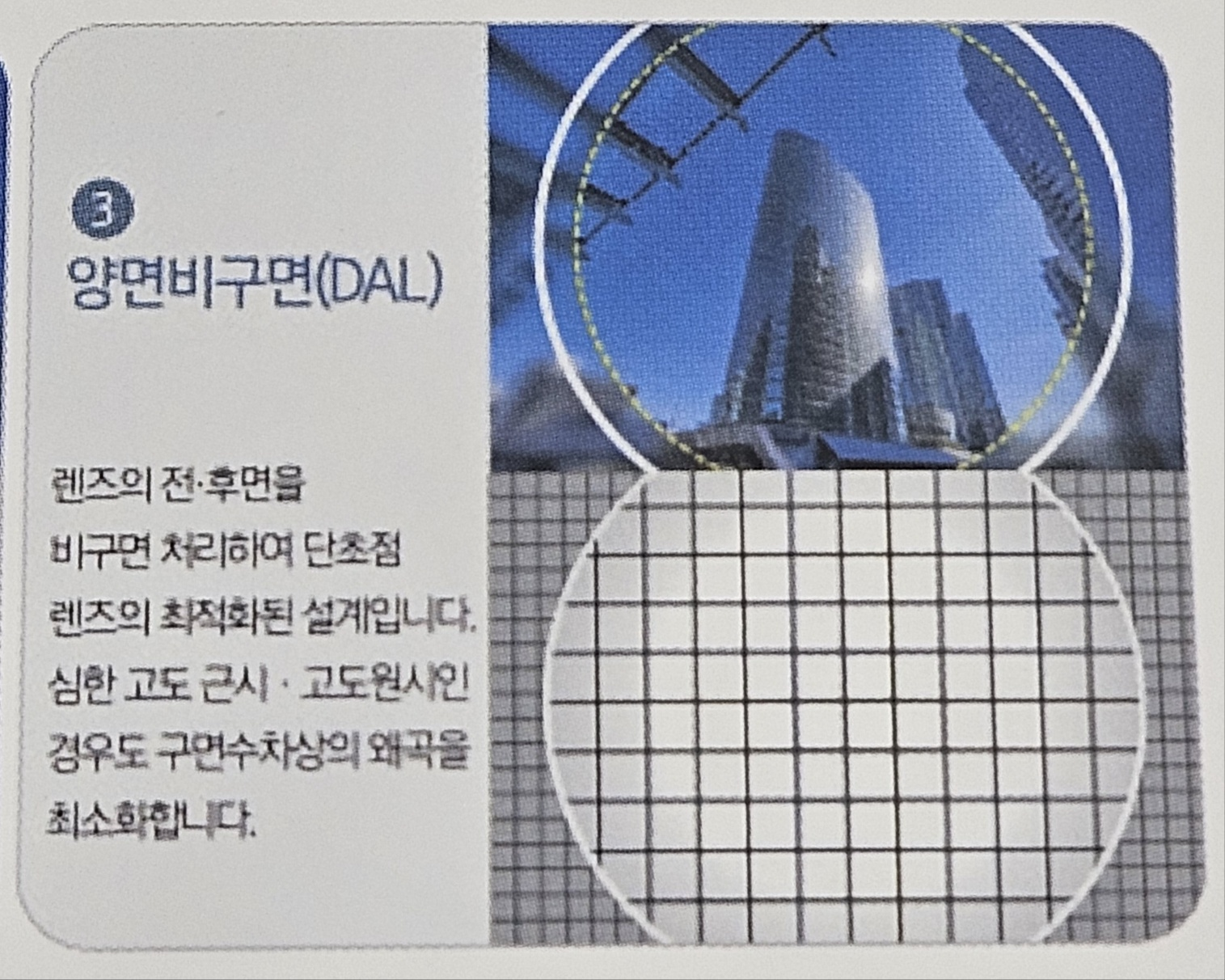 - 고도 근시, 원시, 난시인 도수에서 심해지는 왜곡이 적어 적응하기 수월합니다.