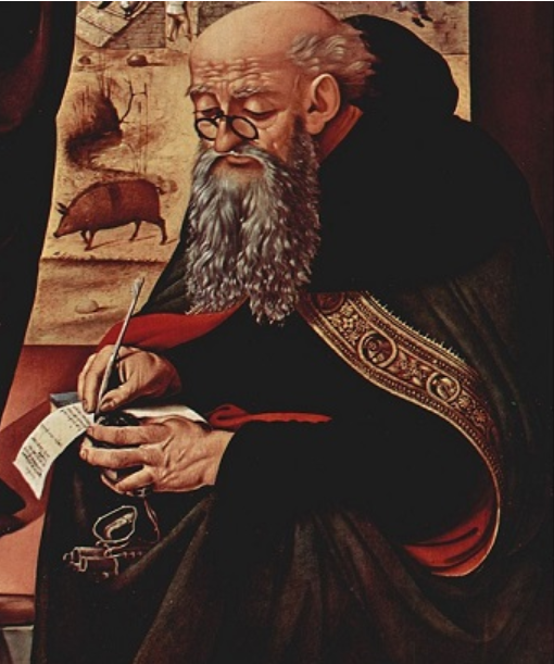 안경이 처음 등장하는 그림은 현재 이탈리아의 성 니콜라 사원에 소장되어 있으며 1352년 이탈리아 화가 토모소 다 모데나(1325~1379)가 그린 <위고 대주교의 초상화>로 일명 대못안경(Riveted Spectacles)으로 나무나 동물의 뿔, 또는 뼈로 만든 테에 수정이나 유리로 된 둥근 렌즈를 끼워 넣은 단안경 두 개를 대못으로 연결시킨 안경이 그려져 있습니다.